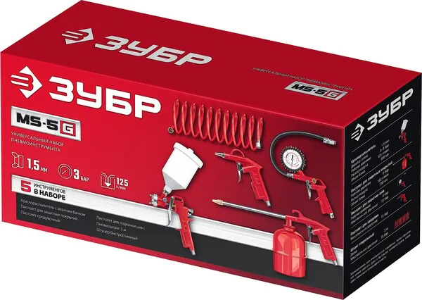 Набор пневмоинструмента ЗУБР MS-5G, 5 предметов, универсальный 06459-H5_z01
