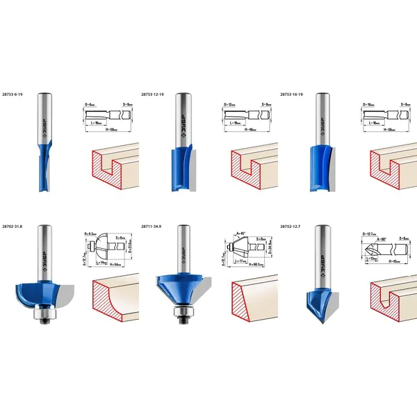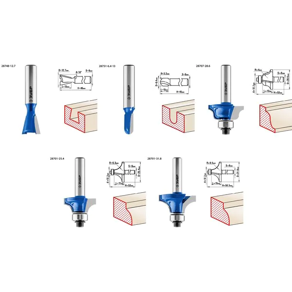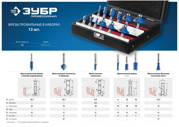 Набор профильных фрез по дереву Зубр Профессионал 12шт 28796-H12