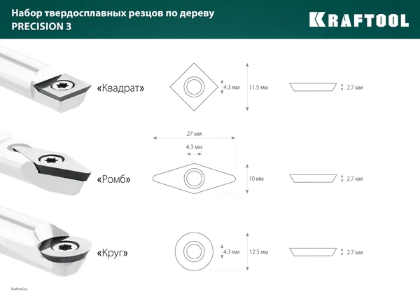 - KRAFTOOL Precision-3, 3 предм., набор ручных резцов по дереву (18369)