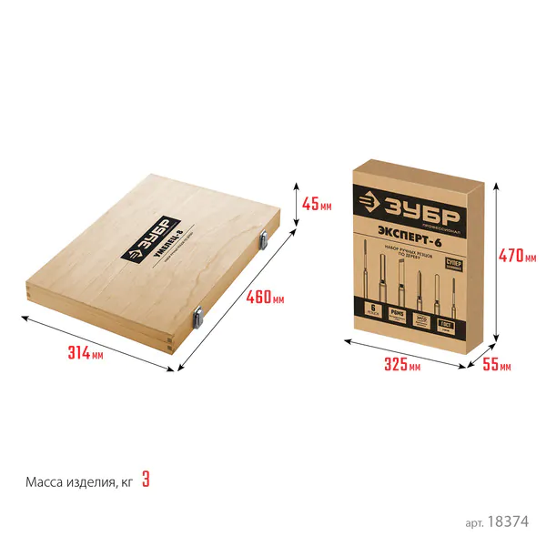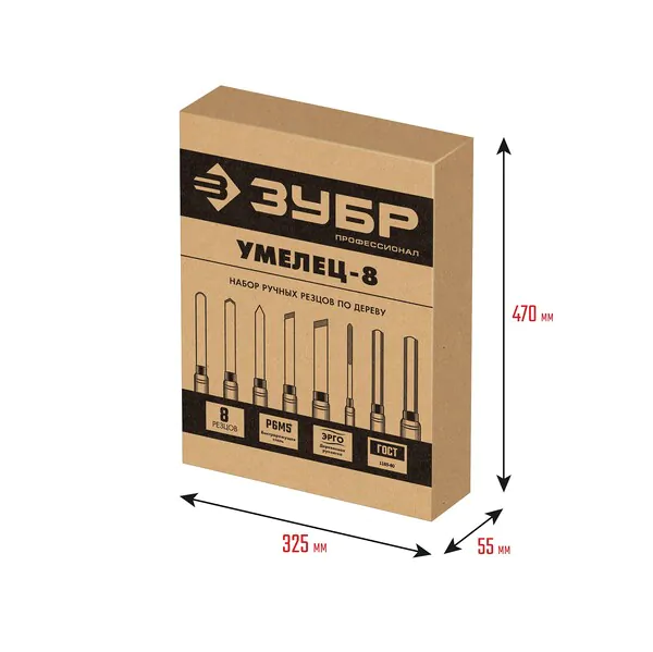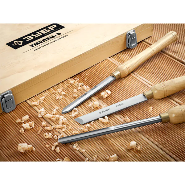 - ЗУБР УМЕЛЕЦ-8, 8 шт, Р6М5, набор ручных резцов по дереву, Профессионал (18374)