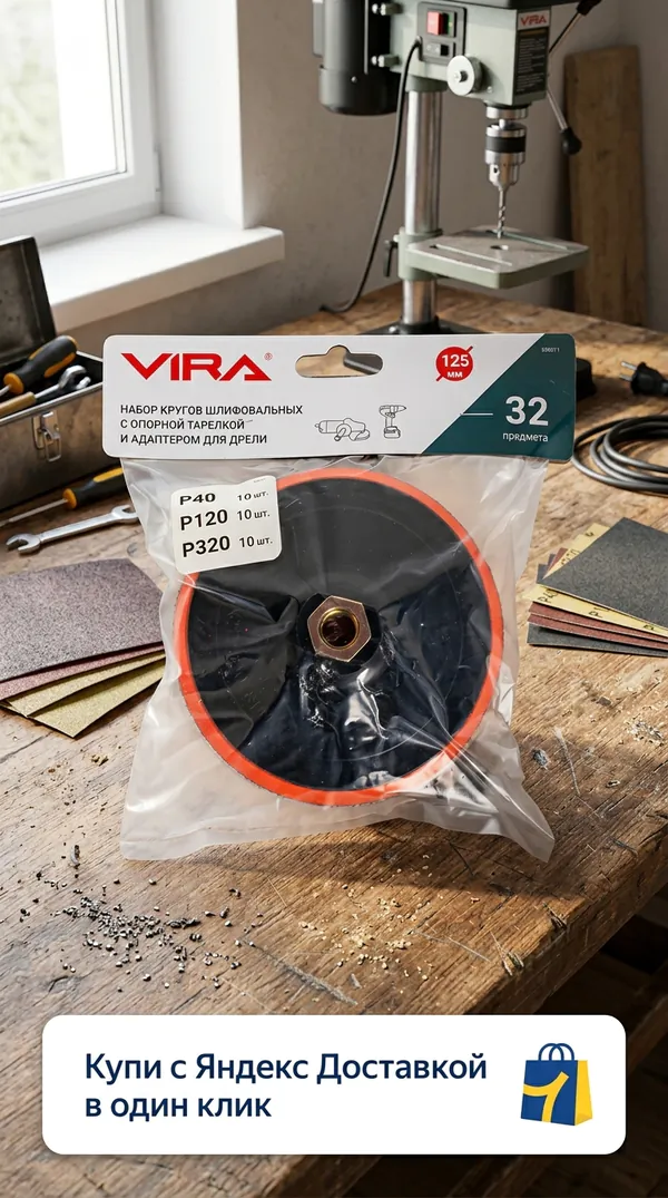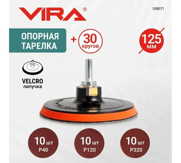 Набор шлифовальных кругов VIRA на липучке 125мм 32 предмета Р40, Р120, Р320 558071