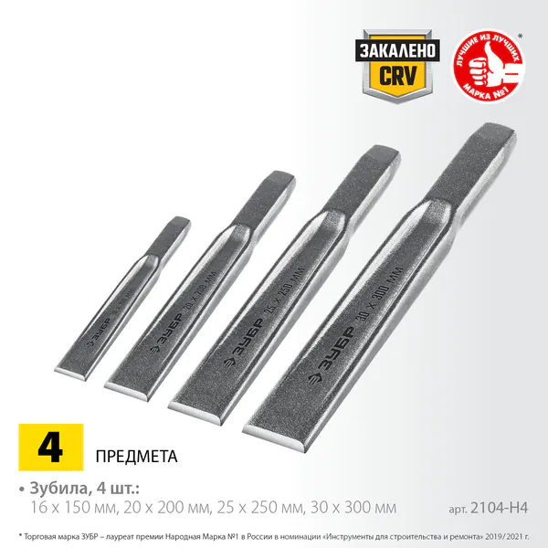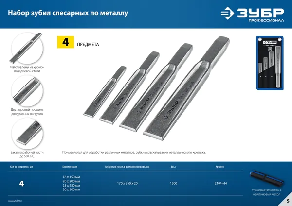 - ЗУБР Двутавр, 4 шт, набор слесарных зубил по металлу, Профессионал (2104-H4)