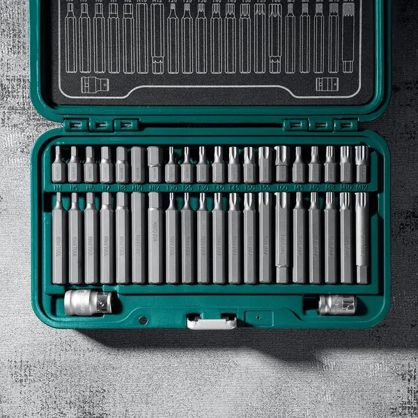 Количество предметов в наборе, шт42Материал изготовленияУсловия гарантии1 годУпаковкаКейсДаРазмер хвостовика, ммГабариты товара (ДхШхВ), мм295*170*60Масса нетто, кг1.9Комплектация