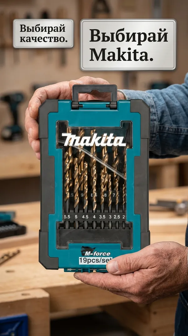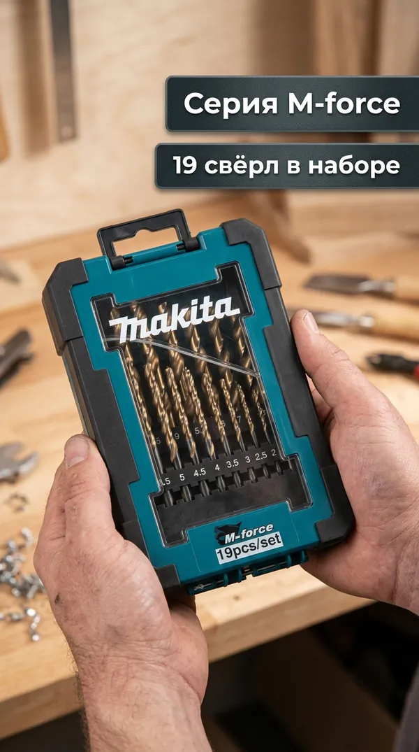 - • набор сверл Makita M-force 19 шт (1-10 мм, шаг 0.5 мм) D-67583.