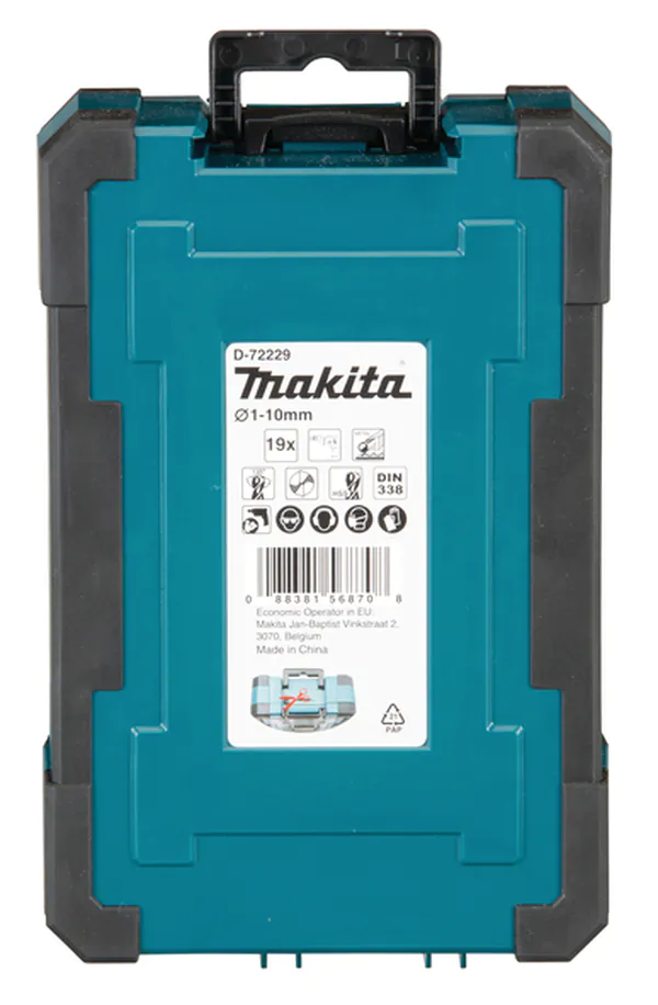 - • набор сверл по металлу Makita HSS-TiN Economy 19 шт (1-10 мм) D-72229;