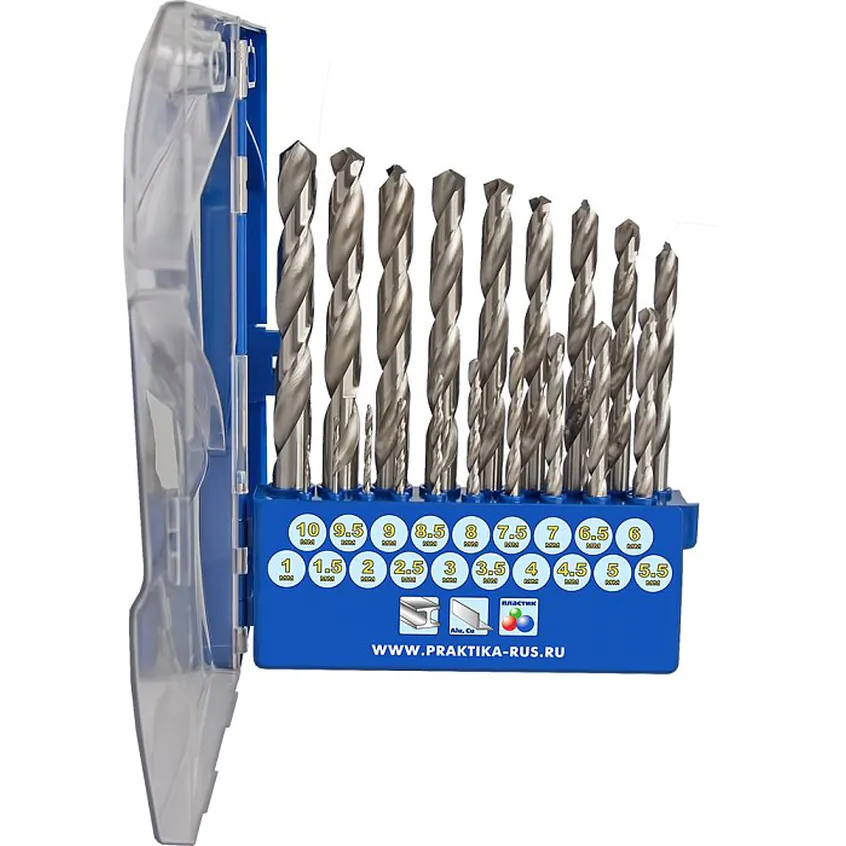 Набор сверл по металлу Практика 19шт Профи 1-10мм шаг 0,5мм 640-308