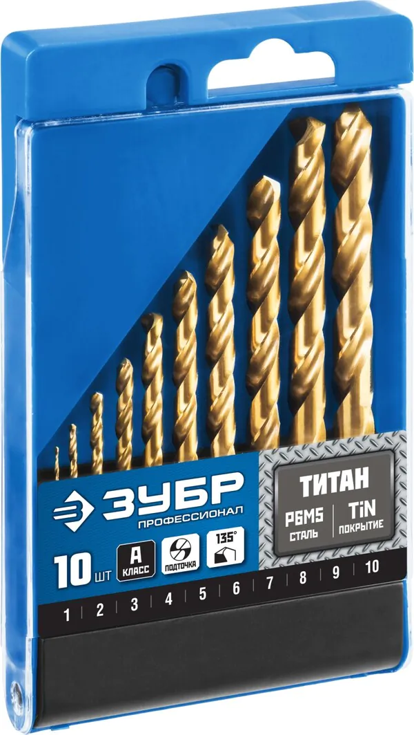 Набор сверл по металлу Зубр 10шт 1-10мм 29615-H10