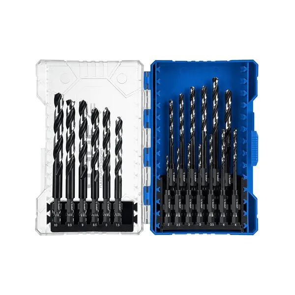 - ЗУБР НЕХ-1/4″, 19 шт, набор сверл по металлу для винтовёртов и шуруповертов IMPACT READY (29623-H19) 29623-H19_z02