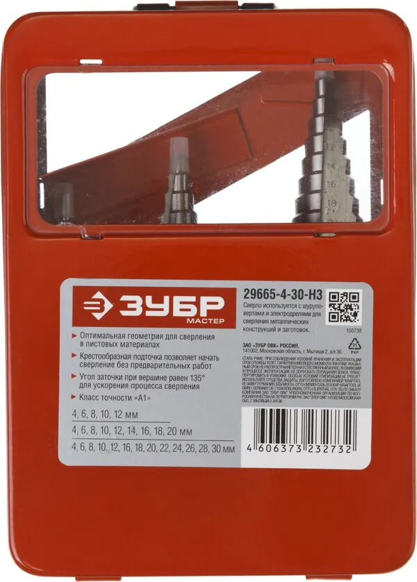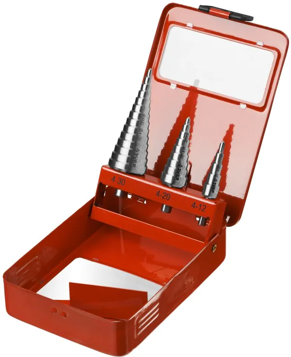 - ЗУБР 4-30 мм, 3 шт, сталь Р4М2, набор ступенчатых сверл (29665-4-30-H3)
