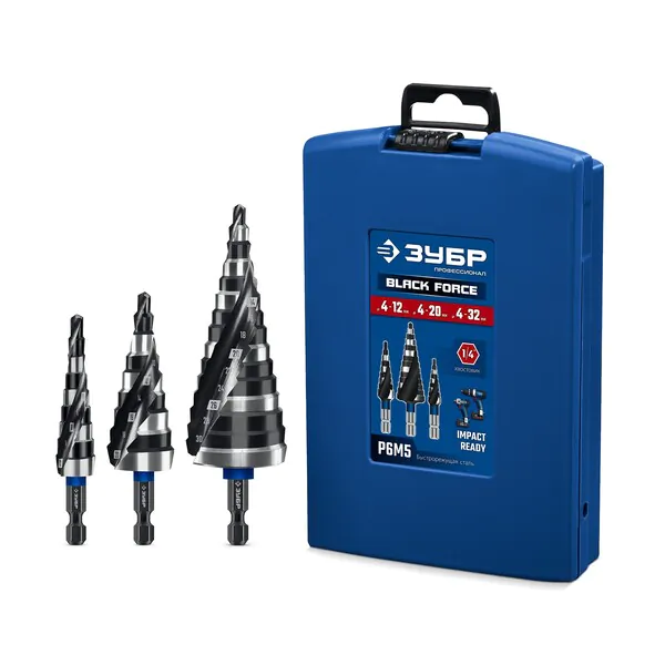 Набор сверл ступенчатых Зубр Профессионал BLACK FORCE 3шт, 4-32мм, винтовая проточка 29671-4-32-H3