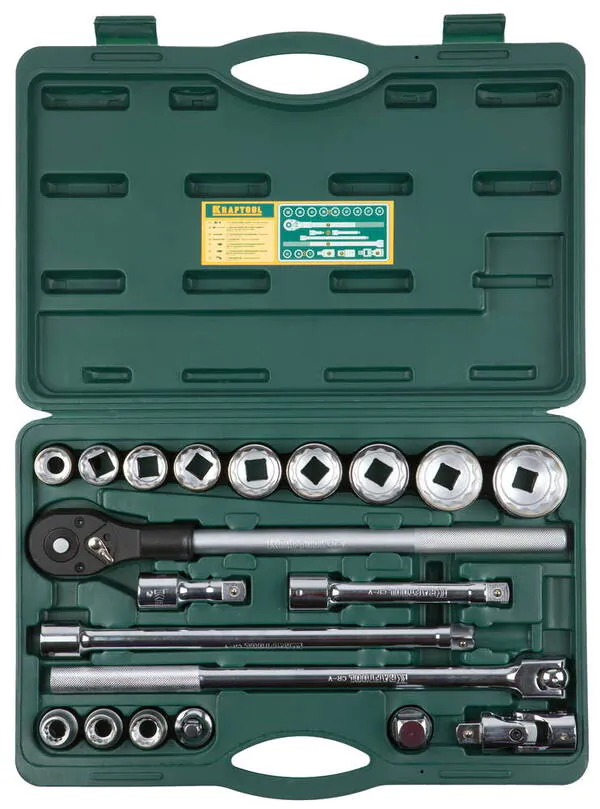 Набор торцовых головок для крупногабаритной техники KRAFTOOL TRUCK 20, 20 предм., (3/4″), 27895-H20_z01