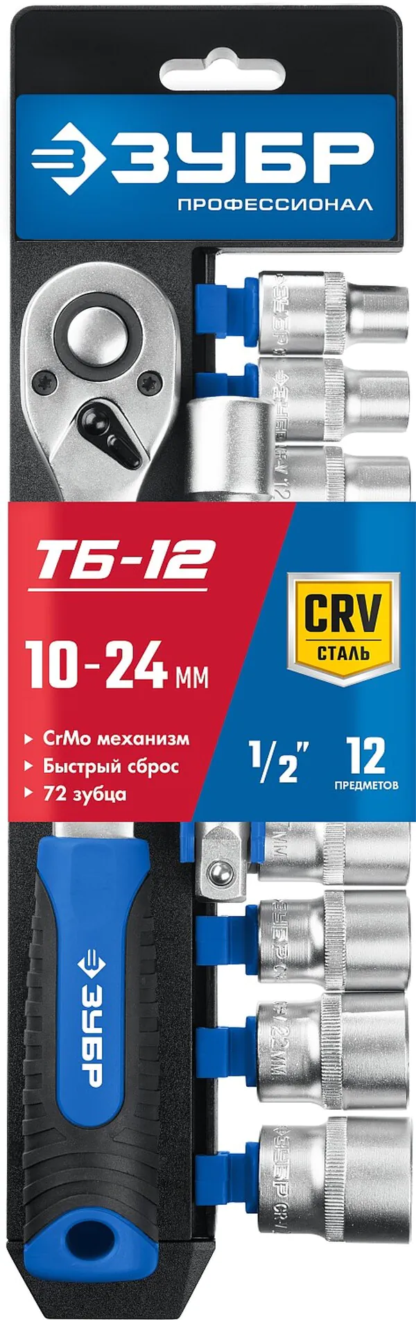Набор торцовых головок Зубр Профессионал ТБ-12Б, 12 предм., (1/2″) 27647-H12_z01