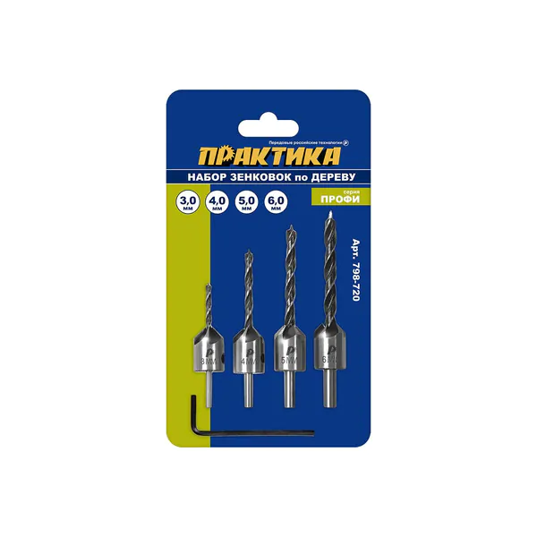 Набор зенковок по дереву Практика 3;4;5;6мм 798-720