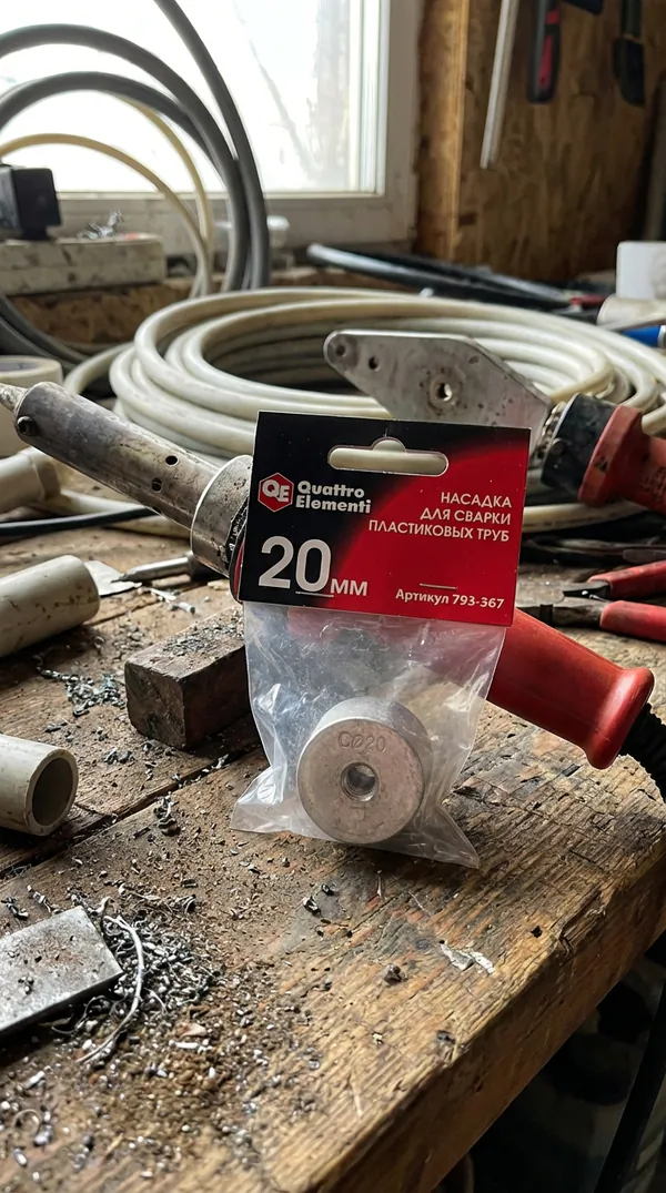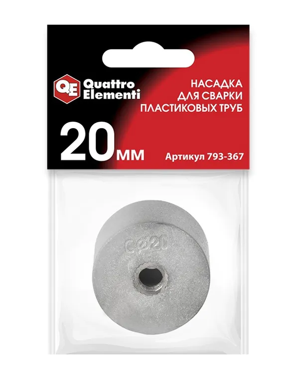- • насадка для сварки пластиковых труб QUATTRO ELEMENTI 20 мм (парная; в пакете с европодвесом) 793-367.