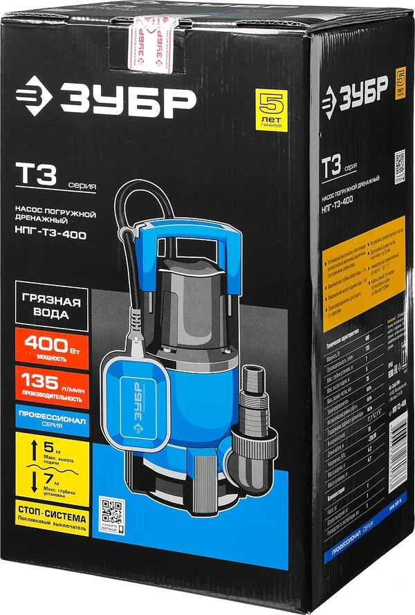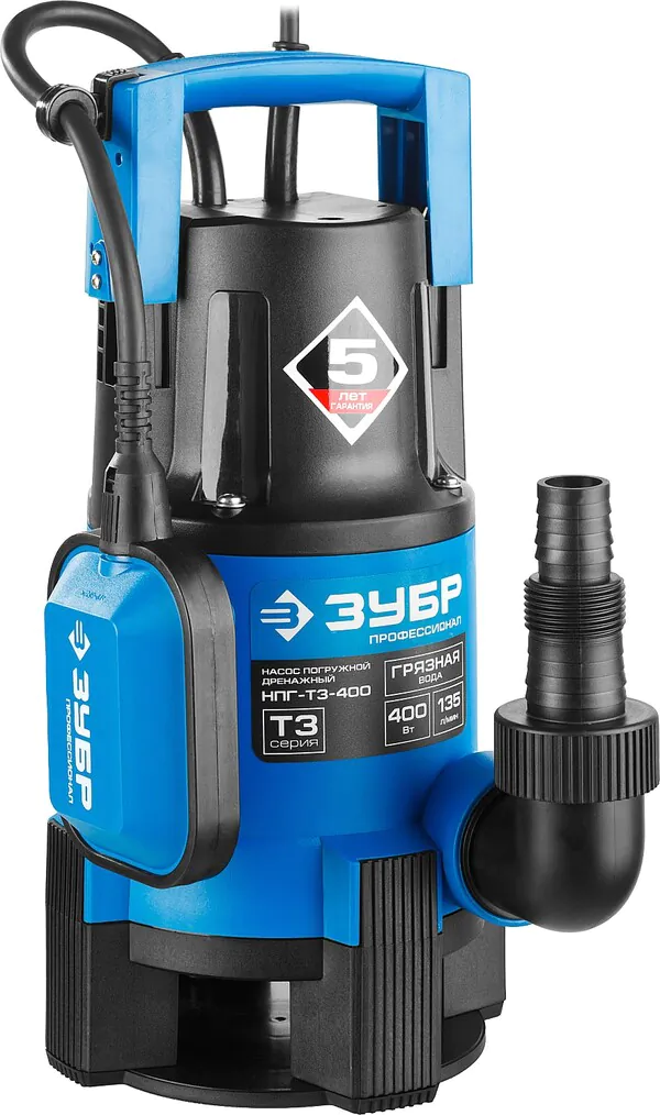 - ЗУБР 400 Вт, дренажный насос для грязной воды, Профессионал (НПГ-Т3-400)