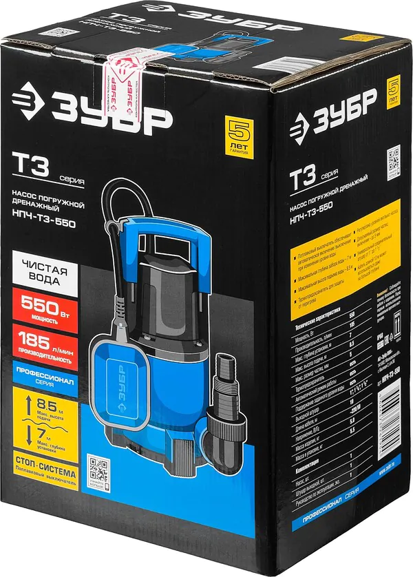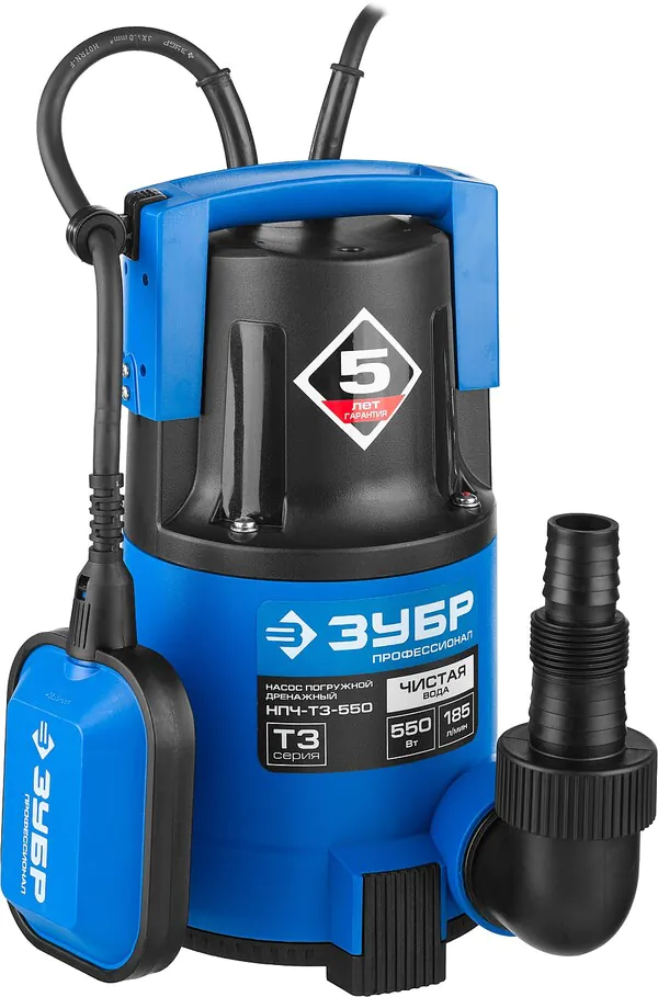 - ЗУБР 550 Вт, дренажный насос с минимальным уровнем откачки, Профессионал (НПЧ-Т3-550)