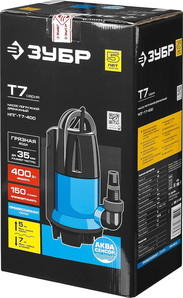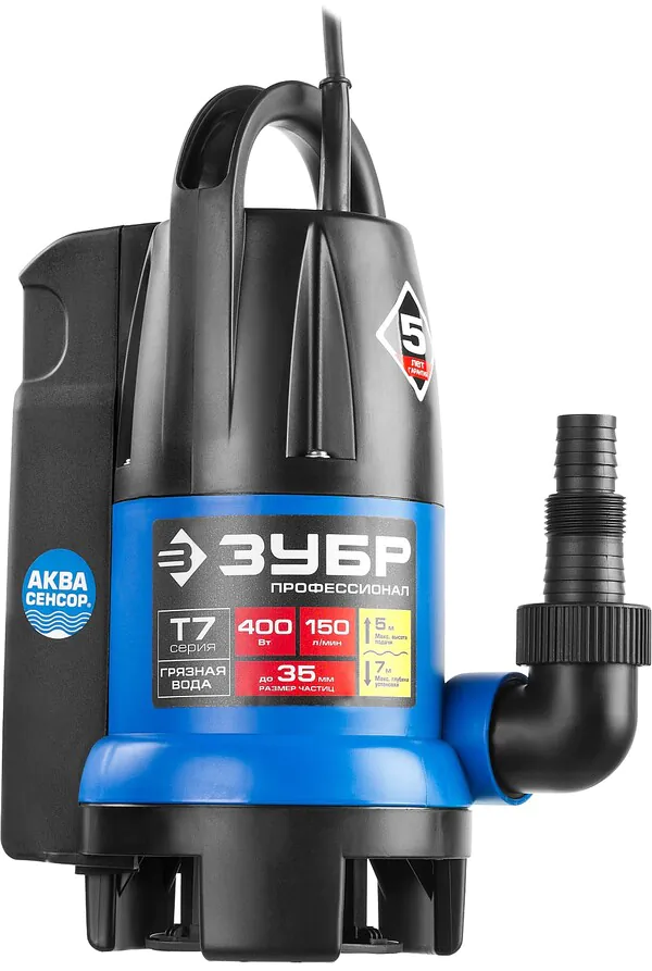 - ЗУБР АкваСенсор 400 Вт, дренажный насос для грязной воды, Профессионал (НПГ-Т7-400)