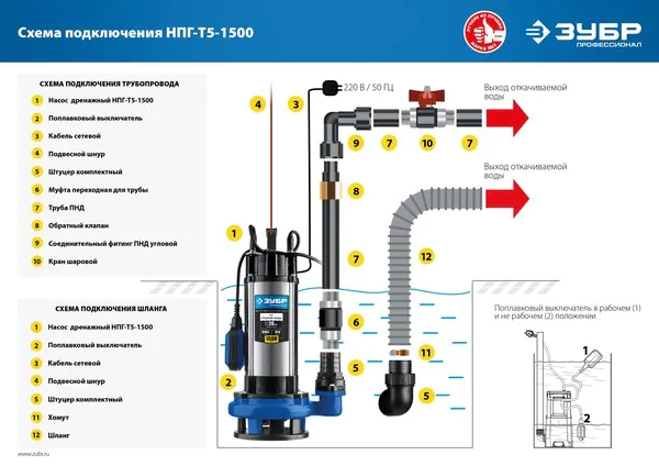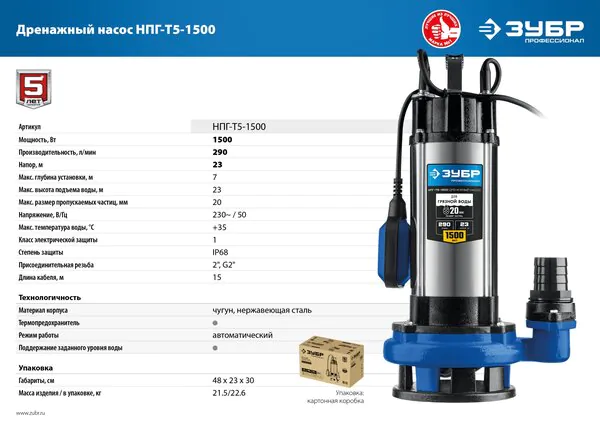 Насос дренажный Зубр Профессионал НПГ-Т5-1500