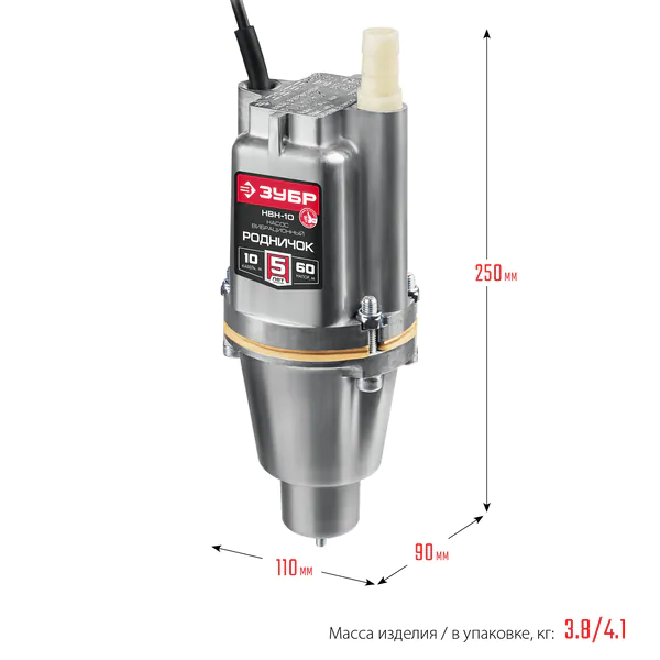 Насос вибрационный ЗУБР Родничок-Н, 10 м, с нижним забором НВН-10