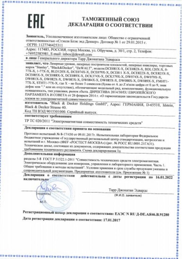 Нивелир лазерный DeWalt DCE 0811 LR-XJ