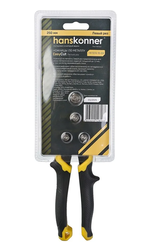- • ножницы по металлу Hanskonner левый рез, УСИЛЕННЫЕ, СrMo, 250 мм HK1074-10-03.