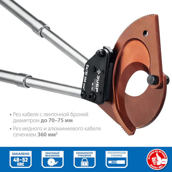 Сечение кабеля, мм²Условия гарантии1 год со дня продажиЧехол на рукояткеДаУпаковкаЗакалка головыСтальная кромкаДаДлина рукояти, мм620ТвердостьФиксатор лезвийДаХраповый механизмДаГабариты товара (ДхШхВ), мм450*230*50Масса нетто, кг4.088Комплектация