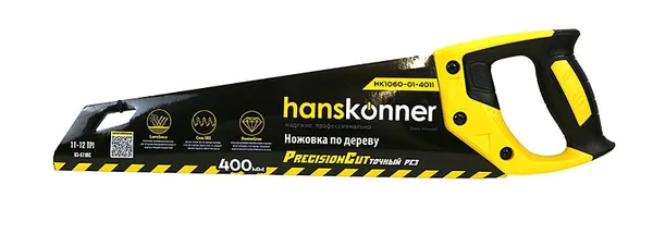 - • ножовка по дереву Hanskonner, 400 мм, 11-12 TPI, SK5, 3D зуб, чистый рез, HK1060-01-4011.