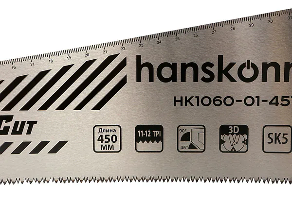 Ножовка по дереву Hanskonner 450мм, 11-12 TPI, SK5, 3D зуб, чистый рез, HK1060-01-4511