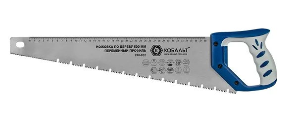 Ножовка по дереву КОБАЛЬТ 500мм, шаг 3.5мм (7 TPI), закаленные зубья, 3D-заточка 248-832