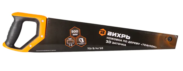 Ножовка ВИХРЬ 500 мм "Тефлон" 3D заточка 73/2/4/10