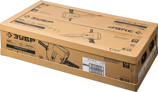 - ЗУБР Бетонолом, 60 Дж, 2200 Вт, АВТ, отбойный молоток HEX-28, Профессионал (ЗМ-60-2200 ВК)
