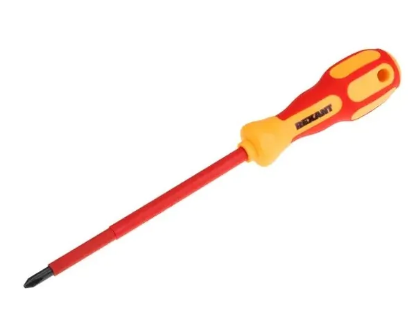 - • отвертка крестовая диэлектрическая REXANT PH2х150 мм, до 100В, двухкомпонентная рукоятка 12-4718.