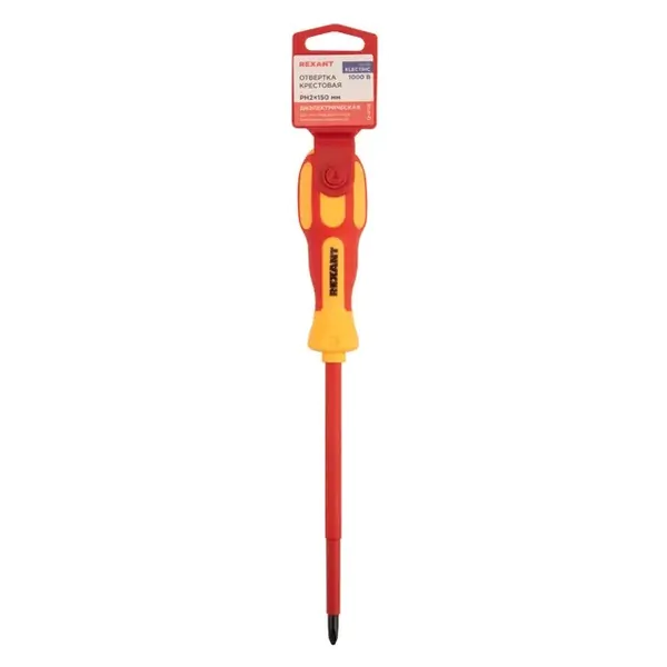 Отвертка крестовая диэлектрическая REXANT PH2х150мм, до 1000В, двухкомпонентная рукоятка 12-4718