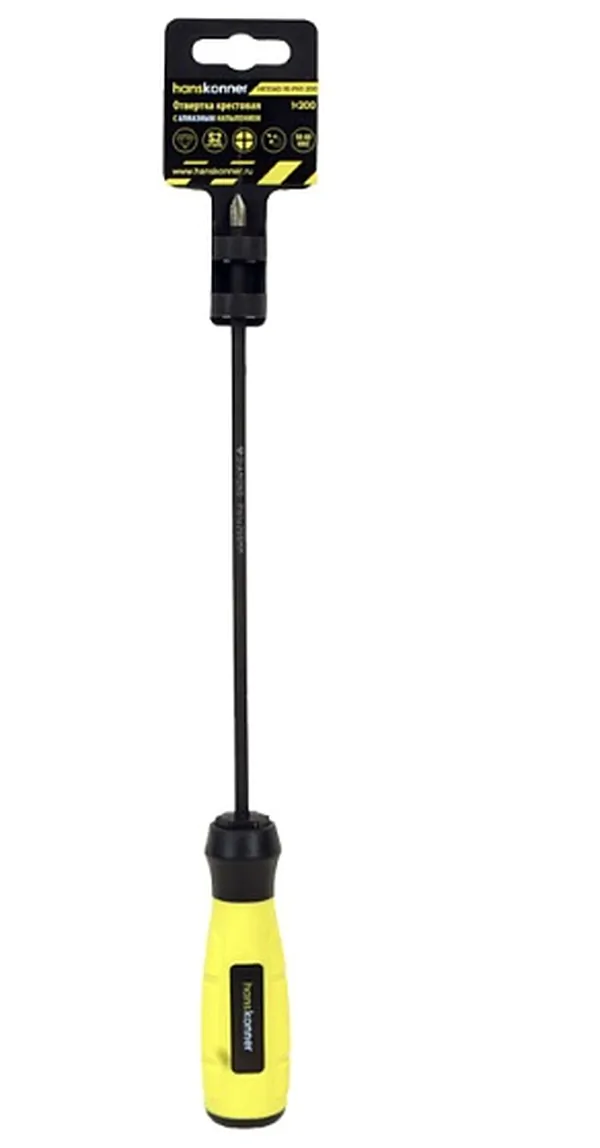Отвёртка крестовая Hanskonner 1x200 АЛМАЗН. НАКОНЕЧ, твердость 59 HRC, S2, HK1040-16-PH1-200