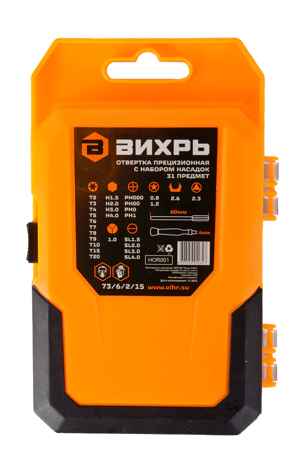 Отвертка Вихрь прецизионная с набором насадок, 31 предмет в кейсе 73/6/2/15