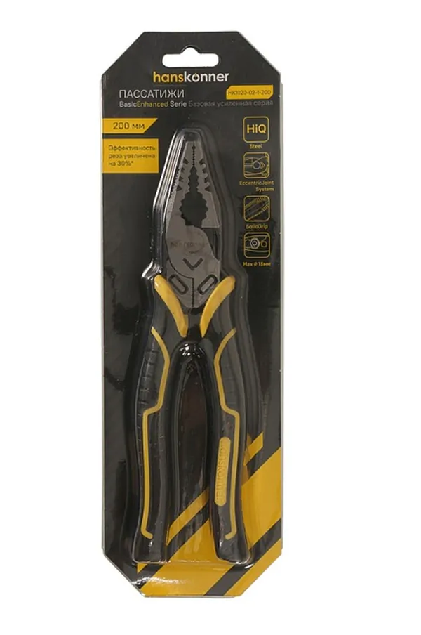 Пассатижи Hanskonner 200мм, эксц. шарнир,+30% к силе реза, TPR рукоятки, HK1020-02-1-200