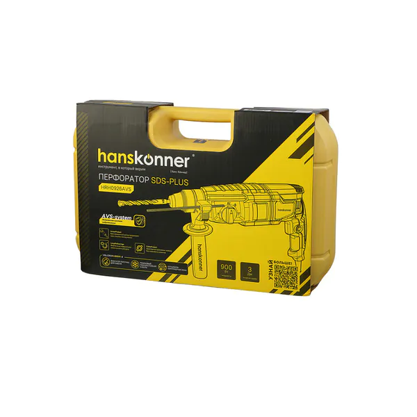 Перфоратор Hanskonner,800Вт, 26мм, 3.0Дж, 0-4900уд/мин,3 реж, 4м кабель,ВИБРОЗАЩИТА HRH0926AVS