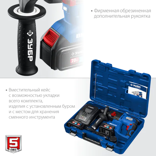 Напряжение аккумулятора, ВMax сила удара, Дж3Частота ударов, уд/мин0-4800Количество режимов работы, штЧастота вращения шпинделя, об/мин0-1050Max диаметр сверления (металл), мм13Max диаметр сверления (дерево), мм40Тип патронаТип двигателяРеверсКоличество аккумуляторов в комплектеБыстросменный сверлильный патронНетЭлектронная регулировка оборотовДаПоворот долотаДаВремя заряда, Ч0.5Фиксация куркаНетПоддержание постоянных оборотов под нагрузкойНетMax диаметр сверления (бетон), мм26Система гашения вибрацииНетТип редуктораУсловия гарантии60 месяцевРежим работыПредохранительная муфтаДаРегулировка глубины резаУпаковкаИндикатор заряда батареиДаНапряжение питания, ВБоковая рукояткаДаКейсДаЗарядное устройствоГабариты товара (ДхШхВ), мм470*105*105Масса нетто, кг6.725