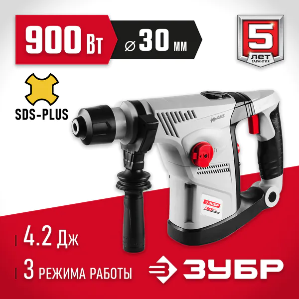 - ЗУБР 30 мм, 900 Вт, перфоратор SDS Plus (ЗПВ-30-900 ВК)