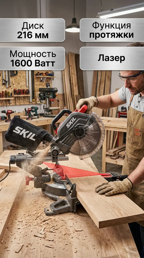 - • пильный диск 216 мм с 40 твердосплавными зубьями (для чистого и точного реза);