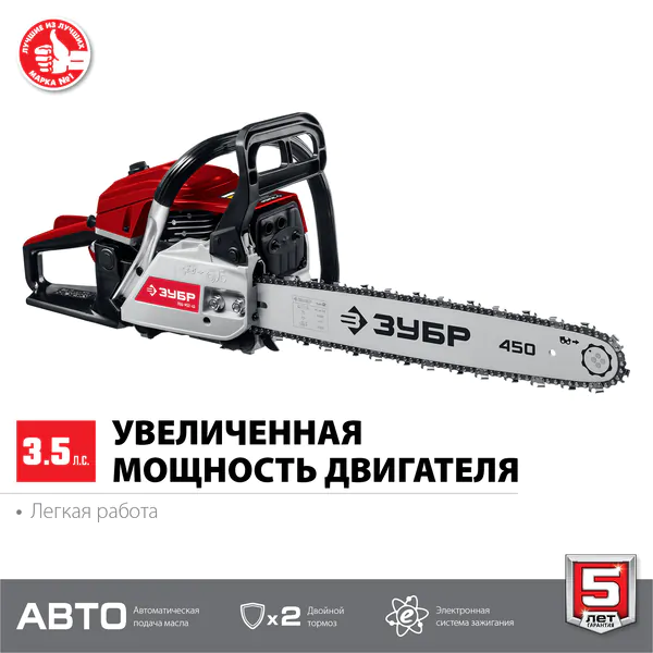 - ЗУБР 52 см3, 45 см, бензопила (ПБЦ-М52-45)