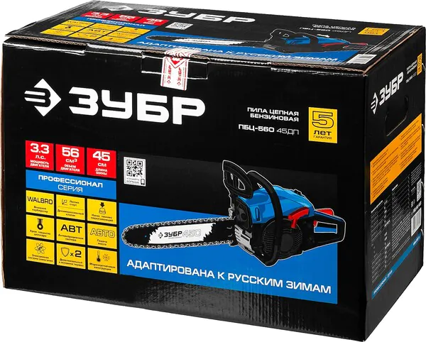 Пила цепная бензиновая Зубр Профессионал 6см3 45см ПБЦ-560 45ДП