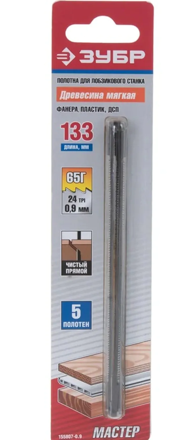 - • пилки лобзиковые ЗУБР по мягкой древесине, L=133 мм, шаг 0.9 5 шт 155807-0.9.