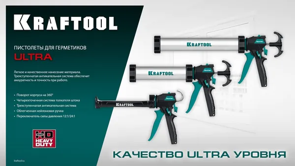 - KRAFTOOL ULTRA 600 мл, регулировка силы давления, вариативная антикапельная система, универсальный закрытый пистолет для герметика (06677-60)