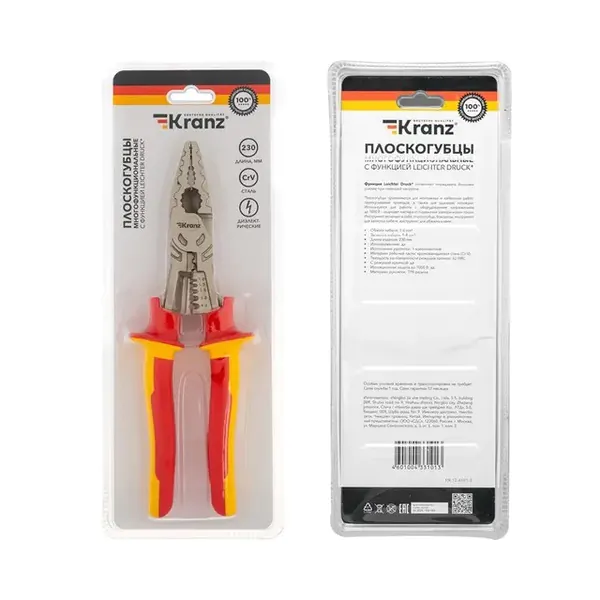 Плоскогубцы KRANZ многофункциональные диэлектрические 230мм KR-12-4651-3