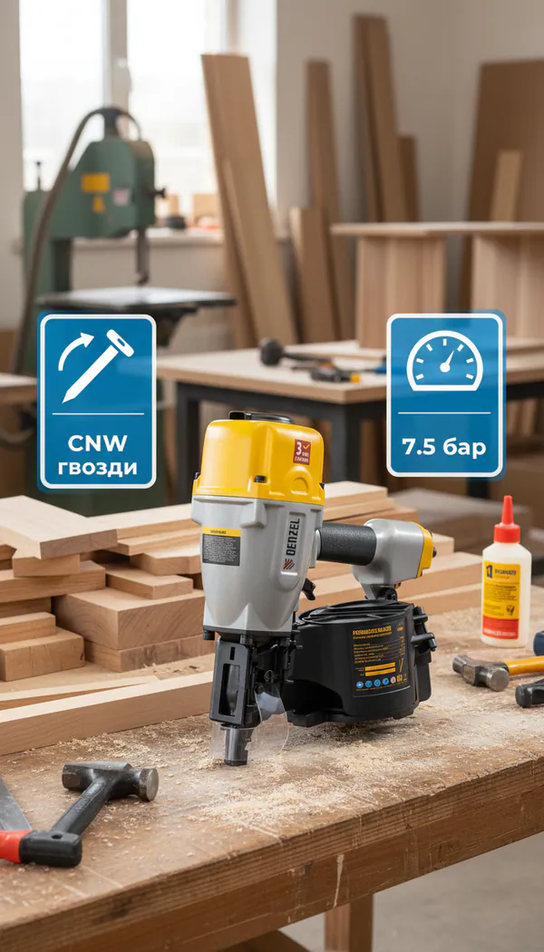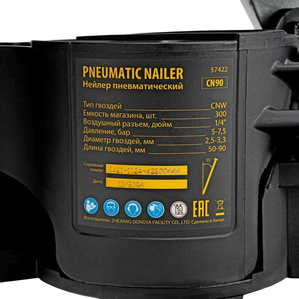 Пневматический нейлер Denzel CN90 для гвоздей CNW 50-90мм 57422