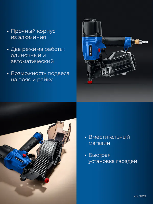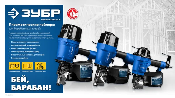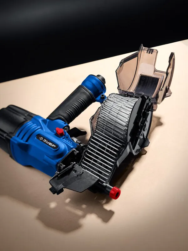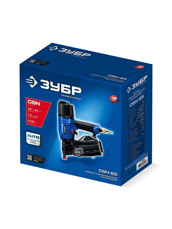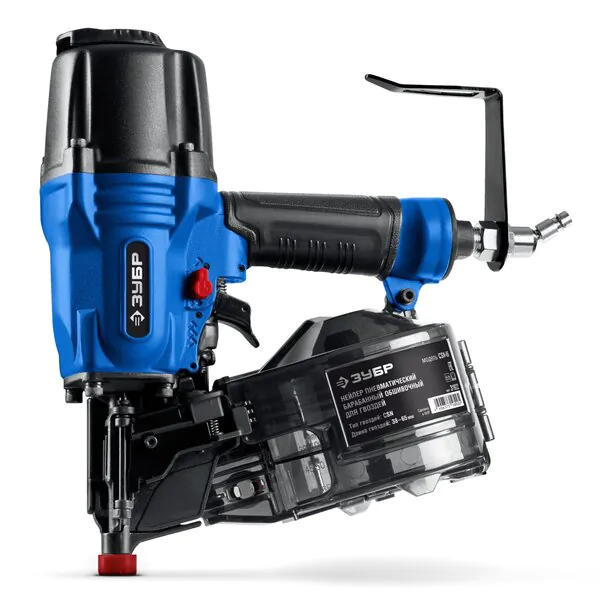- ЗУБР CSN-65, пневматический обшивочный нейлер для барабанных гвоздей ЗУБР CSN (38-65 мм), Профессионал (31922)