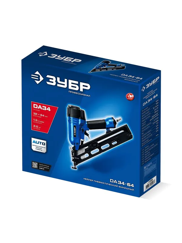 - ЗУБР DA34-64, пневматический финишный нейлер для реечных гвоздей ЗУБР 15Ga, DA34 (32-64 мм), Профессионал (31926)