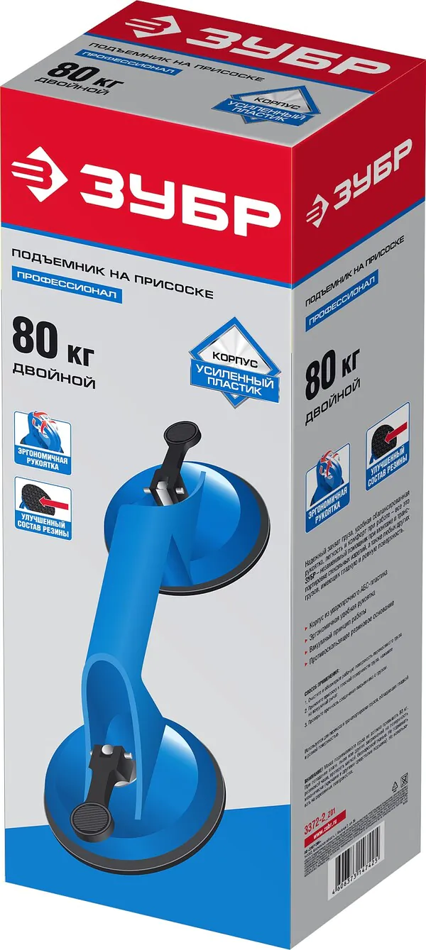 - ЗУБР ABS, 80 кг, двойной подъемник на присоске, Профессионал (3372-2) 3372-2_z01