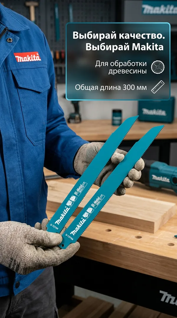 - • полотно для сабельной пилы по дереву Makita 300*1,25-10TPI (2 шт) D-72768.